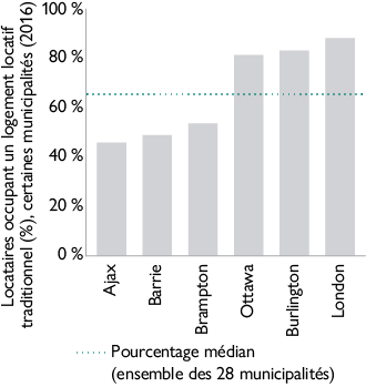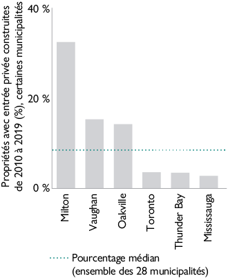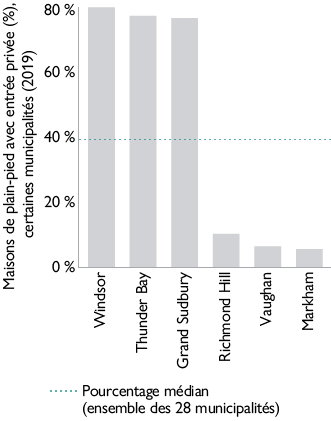 La principale exception à cet égard est la ville de Toronto, qui comptait le plus grand nombre d’habitations avec entrée privée et le plus grand nombre de logements accessoires, soit près de 75 0002.