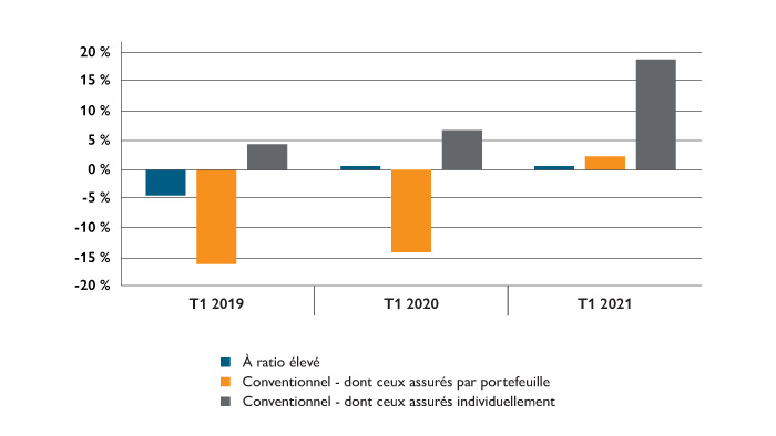 La croissance des prêts consentis par les sociétés de placement hypothécaire s’est accélérée au quatrième trimestre de 2020, après un ralentissement aux deuxième et troisième trimestres (tableau 1). À la fin de 2020, le total de l’actif sous gestion était de 6,2 % supérieur à celui de l’année précédente. La croissance de ce segment est plus lente que la croissance globale du marché hypothécaire résidentiel réglementé (9,5 %).