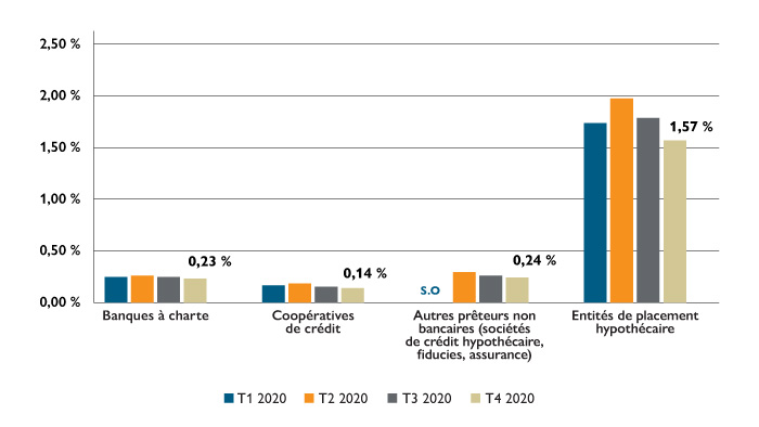 2,5 % du portefeuille de prêts hypothécaires résidentiels de ces types de prêteurs faisait toujours l’objet d’un report de paiements à la fin de 2020 :