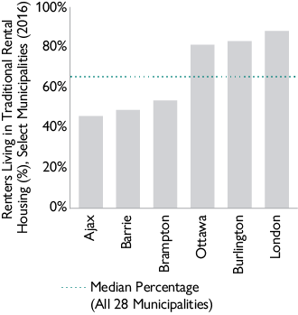 - Municipalities that tended to have a higher ratio of properties with a secondary unit had a low supply of other rental housing: