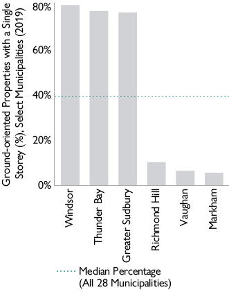 Ottawa, on the other hand, easily had the second-largest number of ground-oriented homes. However, it had fewer secondary units compared to Mississauga and Brampton.