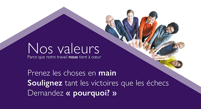Cet objectif est si essentiel à notre travail qu’il a été incorporé à notre énoncé stratégique. Il fait du risque un aspect attendu et valorisé de notre approche du travail.